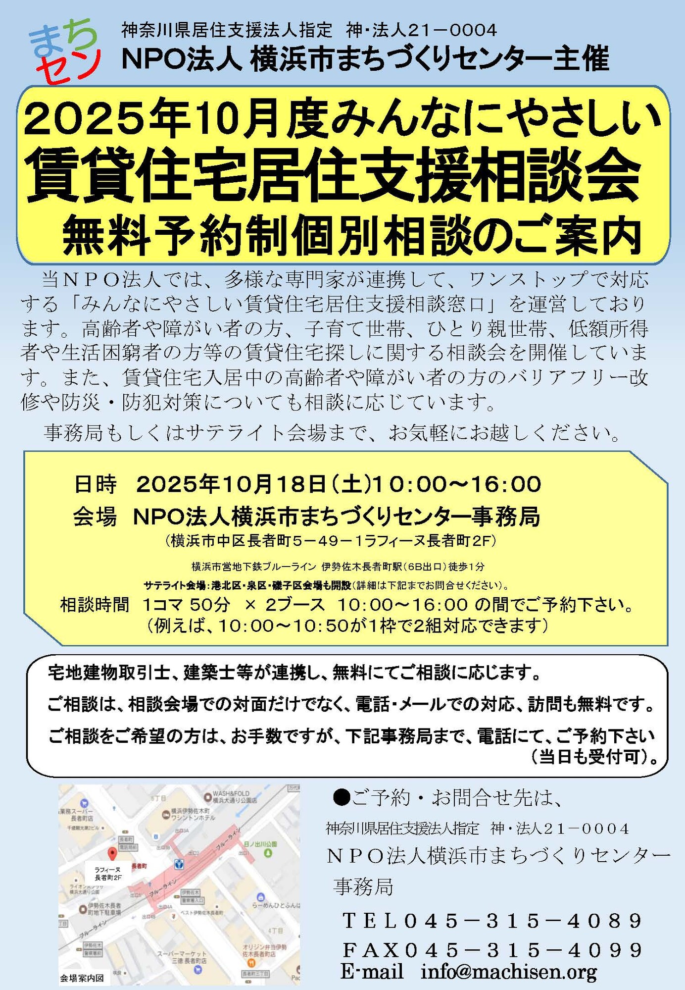 ※サテライト会場:港北区・泉区・磯子区でも相談会場開設