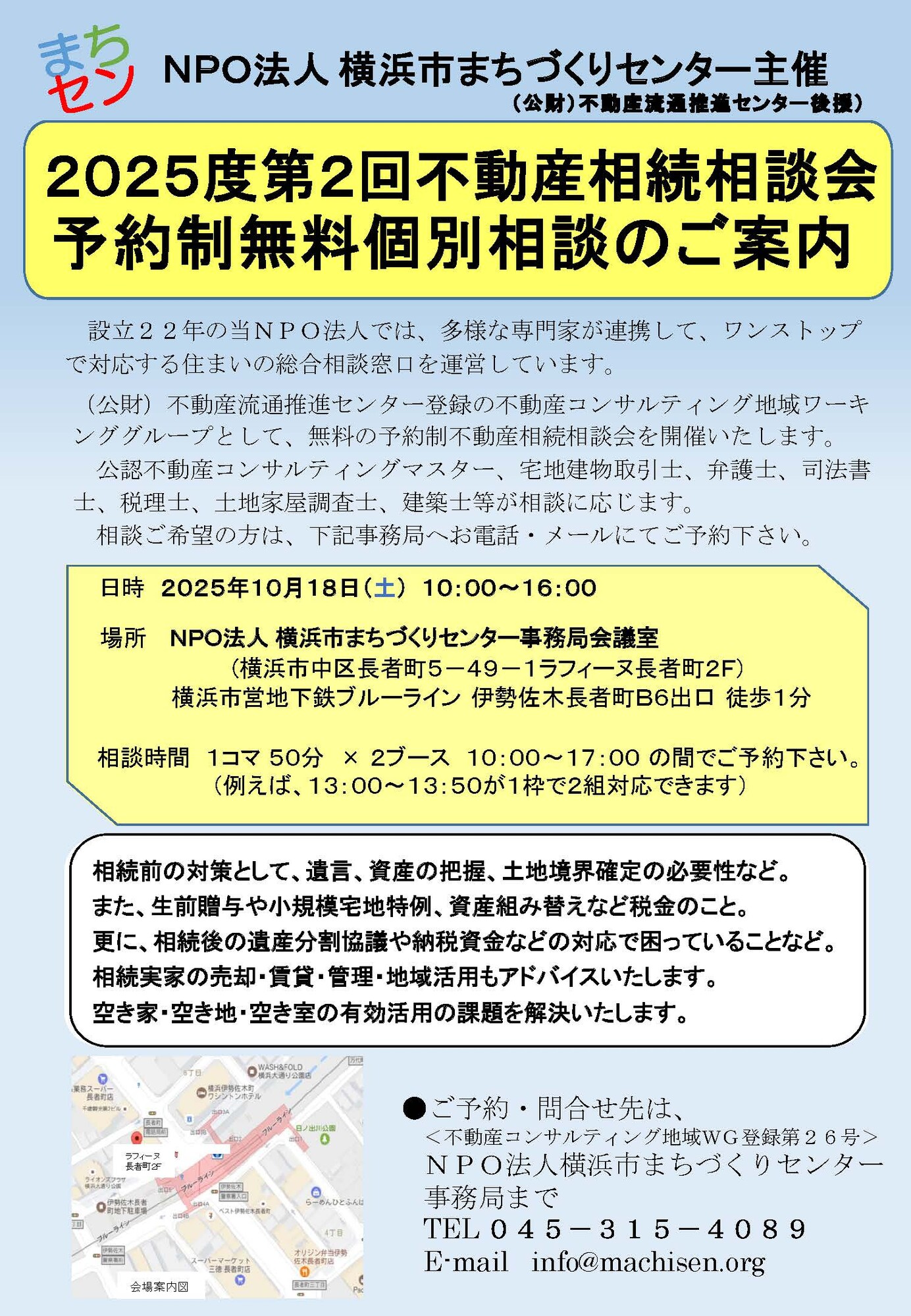 横浜市まちづくりセンターでは、(公財)不動産流通推進センター登録の 不動産コンサルティング地域ワーキンググループとして、 多様な専門家が連携して、ワンストップで対応する